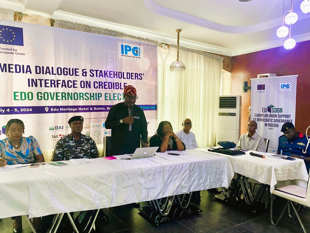 The stakeholders, comprising the representatives of the Independent National Electoral Commission (INEC), the Nigerian Police Force, the Nigeria Security and Civil Defence Corps (NSCDC), and the Nigerian Union of Journalists, convened at the interface on credible governorship election in Edo State organised by the International Press Centre under Component 4: Support to Media of the European Union Support to Democratic Governance in Nigeria (EU-SDGNII) project.