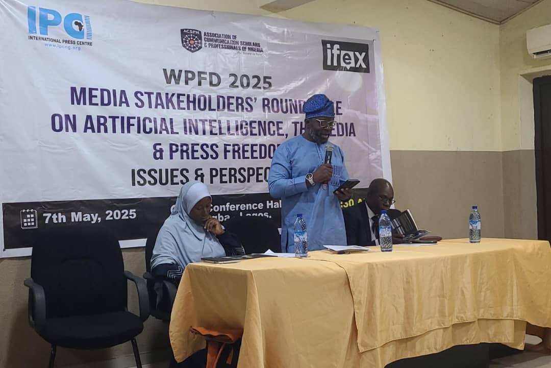 The one-day Media Stakeholders’ Roundtable, themed “Artificial Intelligence, The Media, and Press Freedom: Issues and Perspectives”, was organised by the International Press Centre (IPC), in partnership with the Association of Communication Scholars and Professionals of Nigeria (ACSPN), and supported by IFEX—a global network of over 100 organisations committed to advancing freedom of expression to commemorate World Press Freedom Day (WPFD) 2025.