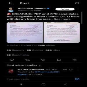 As polling units began opening on election morning, a social media post by @Pharmacio001 gained traction, alleging that both the PDP and APC candidates for Gwagwalada Area Council had withdrawn from the race. The post generated significant engagement and sparked mixed reactions.
