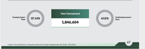 According to the National Bureau of Statistics (NBS), Lagos state unemployment rate as at Q4 2020 release was 1,846,604 million at 37.14%.
