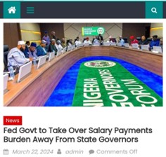 Due to these contradicting comments, the researcher decided to verify the claim if the Federal Government is taking over salary payment from the State Governors.