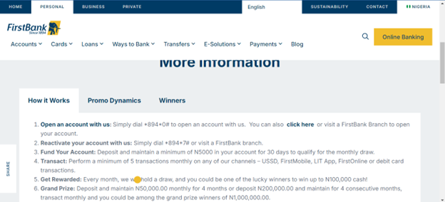 We also checked the promo page on the FirstBank official website to corroborate our findings and noticed that though the bank has a promo plan for customers who are just opening accounts, it has nothing to do with the claim as posted on the Facebook page.