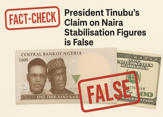 President Tinubu’s assertion that the exchange rate was ₦1,900 to the dollar when he took office in May 2023 is misleading. Official CBN data shows the exchange rate stood at around ₦464.50/$1 in the Investors & Exporters window at the time, while the parallel market averaged ₦750–₦770/$1. The naira only crossed ₦1,000/$1 later, after his administration’s reforms. Therefore, his claim on naira stabilisation figures is misleading.