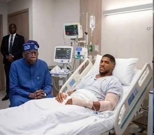 Images circulating on social media claim that President Tinubu paid a hospital visit to Anthony Joshua.