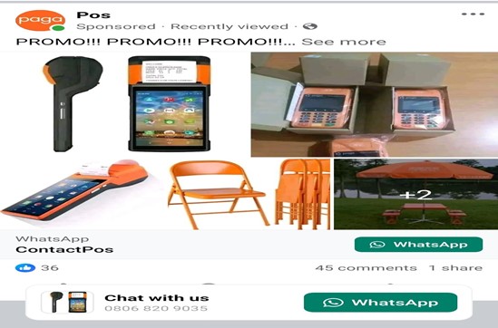 In a further finding, we noticed that similar sponsored posts exist as listed; Paga Nigeria,here, here, here, here and here,