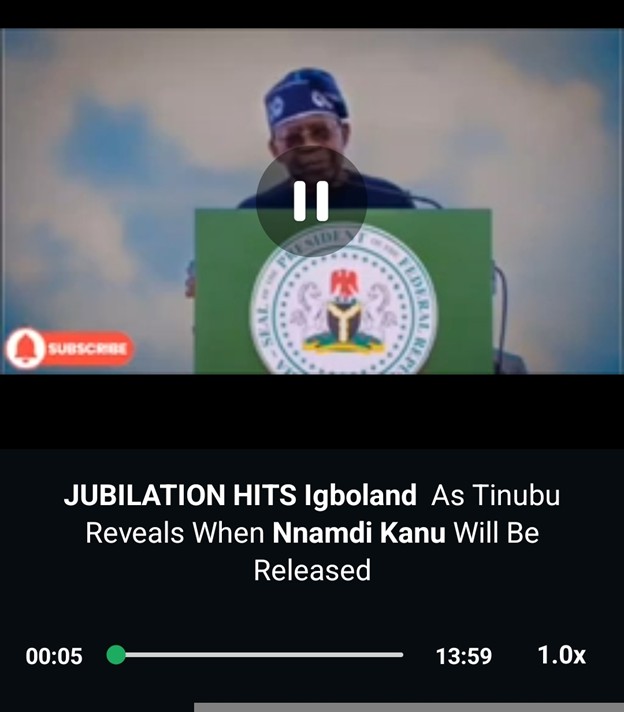 Claim: A viral video circulating online claims President Tinubu has announced when Nnamdi Kanu will be released. Verdict: False Full Text: NDRFactcheck found a video circulating online claiming that President Bola Tinubu announced when Nnamdi Kanu would be released in a broadcast. The thirteen-minute video, part of which reads, “The matter of Mazi Nnamdi Kanu