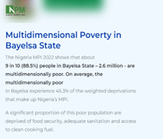 CONCLUSION: Claim that Bayelsa is the second poorest state in the country is TRUE, as 88.5% of its total population are multidimensionally poor.