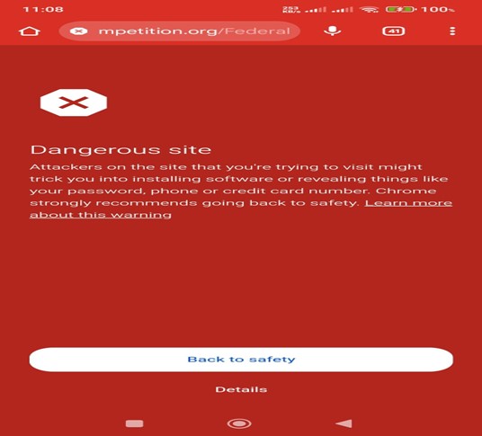 When we clicked on the link to the application portal to register, we saw that the website had been flagged as a “Dangerous Site, Attackers on the site might trick individuals into installing software or reveal individual passwords, phone or credit card numbers.