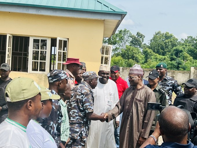 Prof. Mahmood Yakubu, visited the Commission’s Koton Karfe Local Government Office, as part of his Readiness Assessment visit to Kogi State. While there, he met with security officials and inspected the non-sensitive election materials already batched for the governorship election.