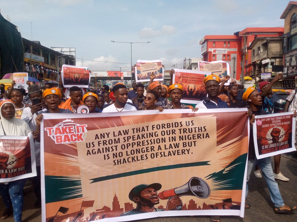The protest, which was organised by the Take it Back Movement, a human rights organisation, was held in some megacities in the country, like Lagos, Abuja, Ibadan and Port Harcourt, on Monday, 7th April 2025, and was addressed to the government to repeal the Cybercrime Act, which is being used lately to prosecute media practitioners and social media users who share dissenting positions against the authority.