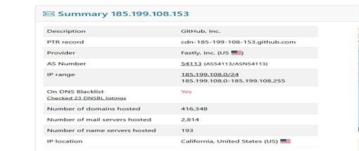 screen shot of analysis results