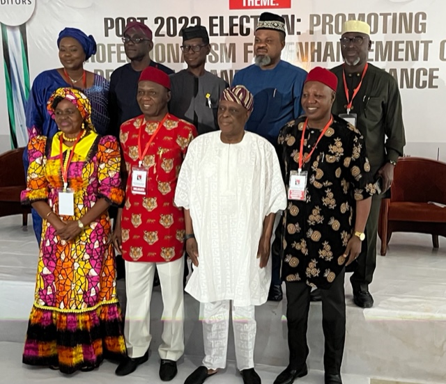 Former Gov Olusegun Osoba and the Executives of Nigeria Guild of Editors
