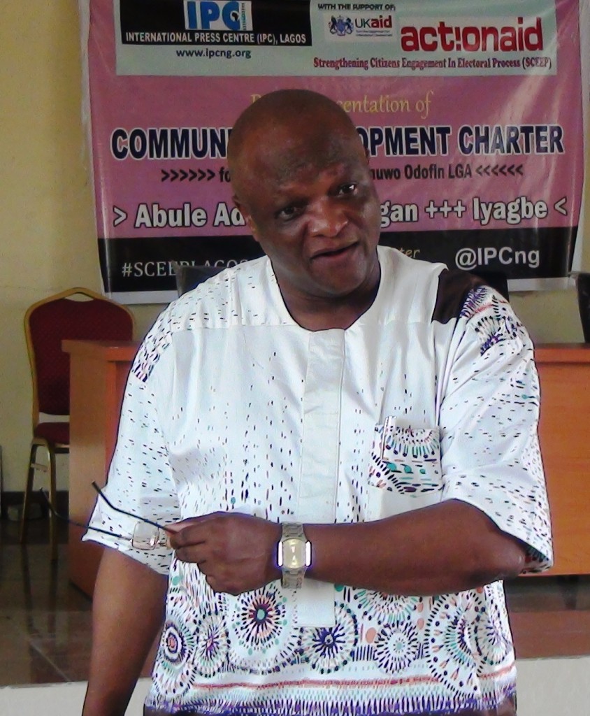 A development expert, Ayo Aluko-Oluokun, has advised Nigerians to vote out of office, politicians that do not fulfill their campaign promises. The call was made by Aluko-Oluokun during the public presentation of community development charters for Iyagbe, Abule Ado and Itu Agan communities of Amuwo Odofin Local Government Area of Lagos State by the International Press Centre (IPC) in conjunction with UKAID/DFID and ACTIONAID under the project, Strengthening Citizens Engagement.